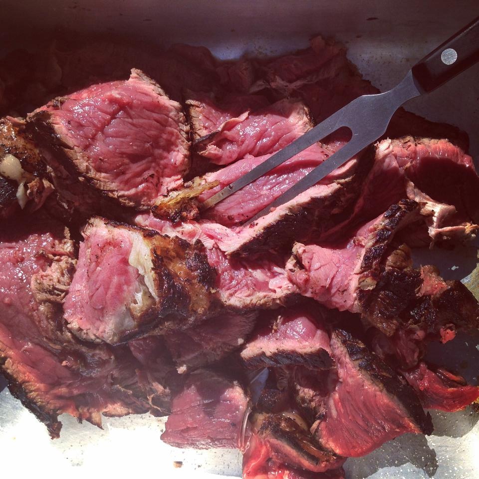 这是已经烤好的肉,我知道看上去很生。但是法国的肉质量非常好,即便没有调料也很鲜嫩。